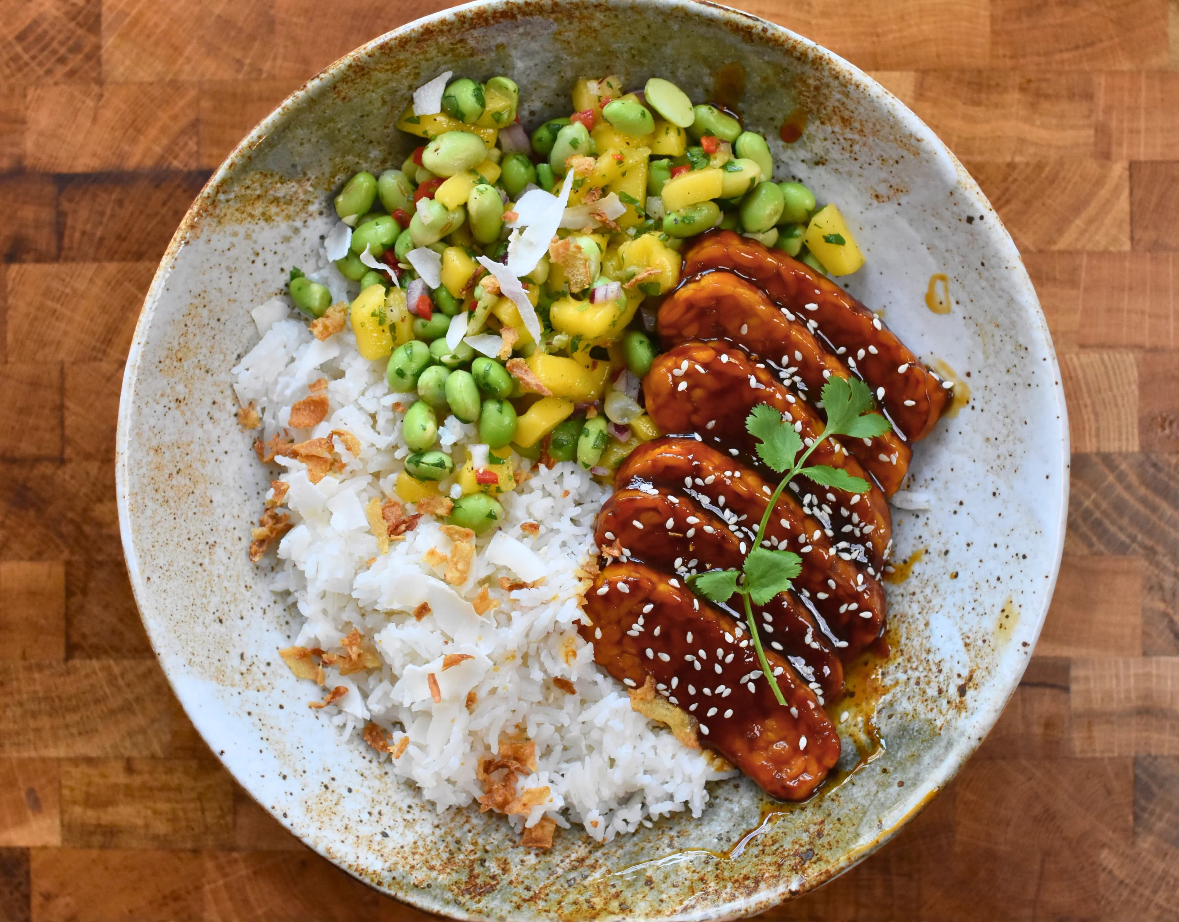 Sticky Chili-Lime Tempeh with Coconut Rice